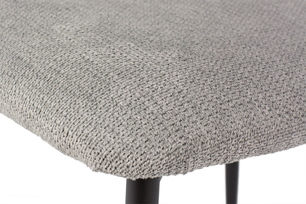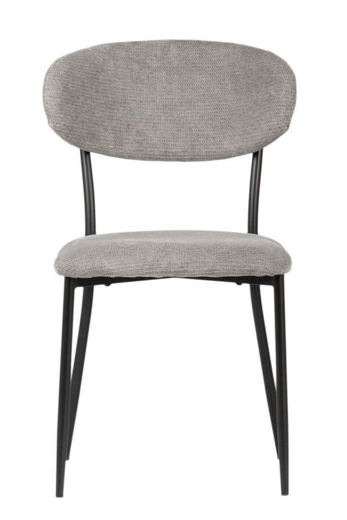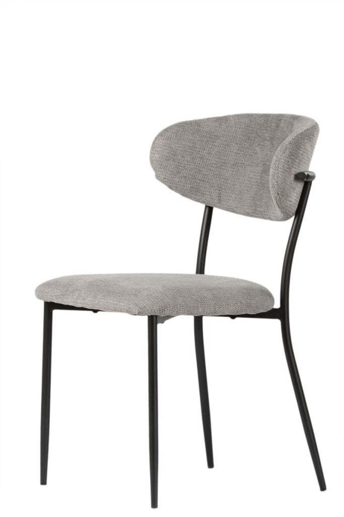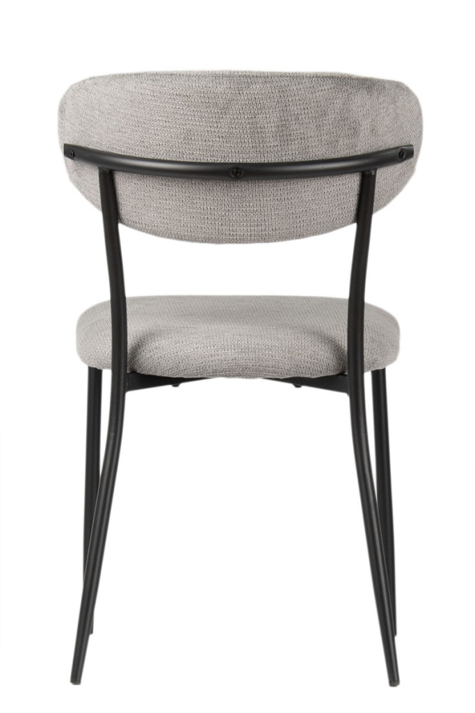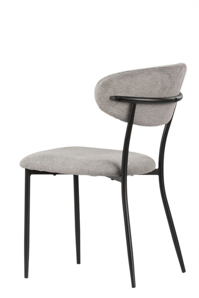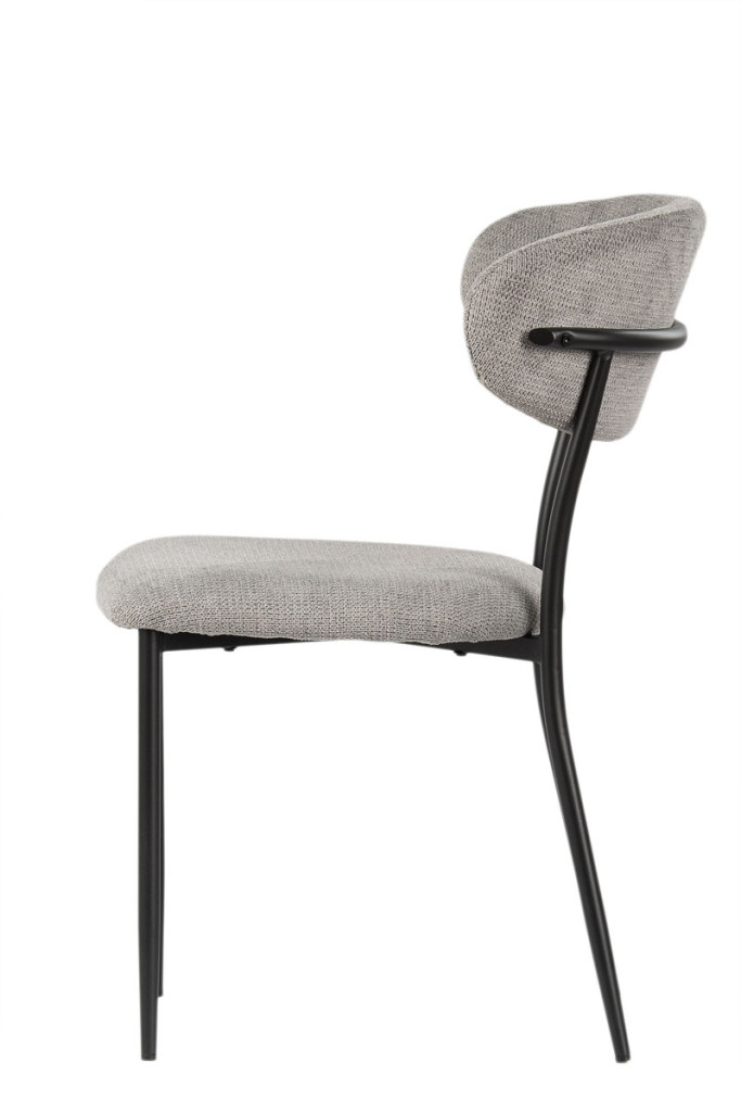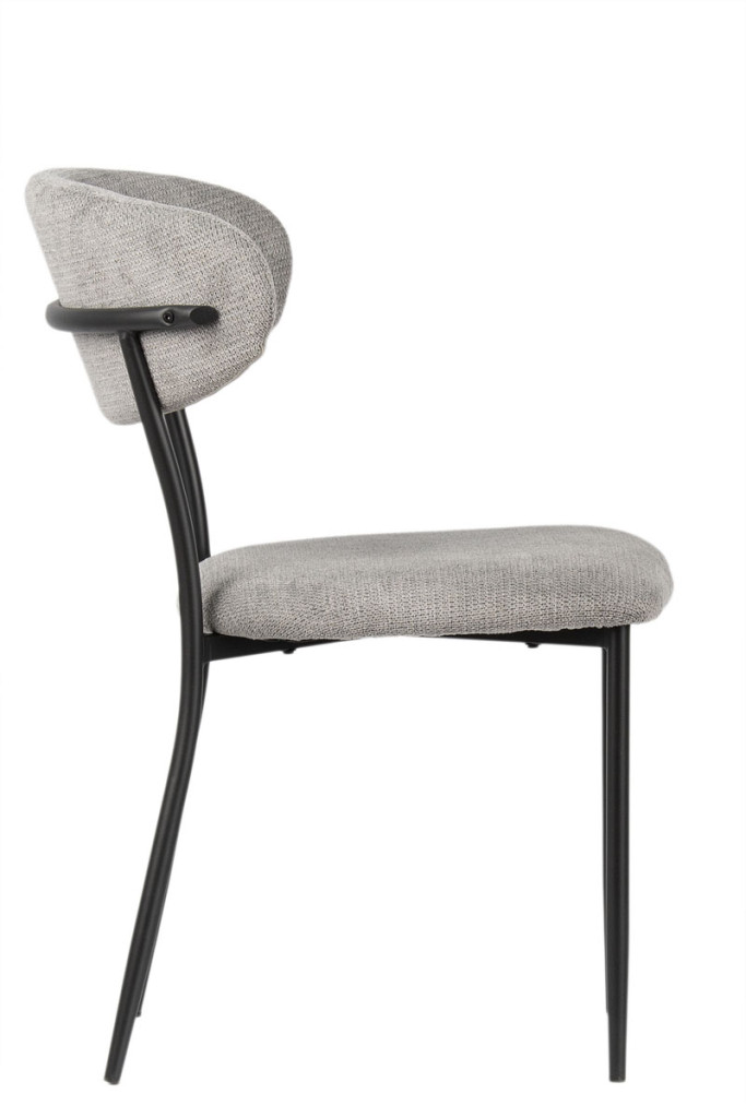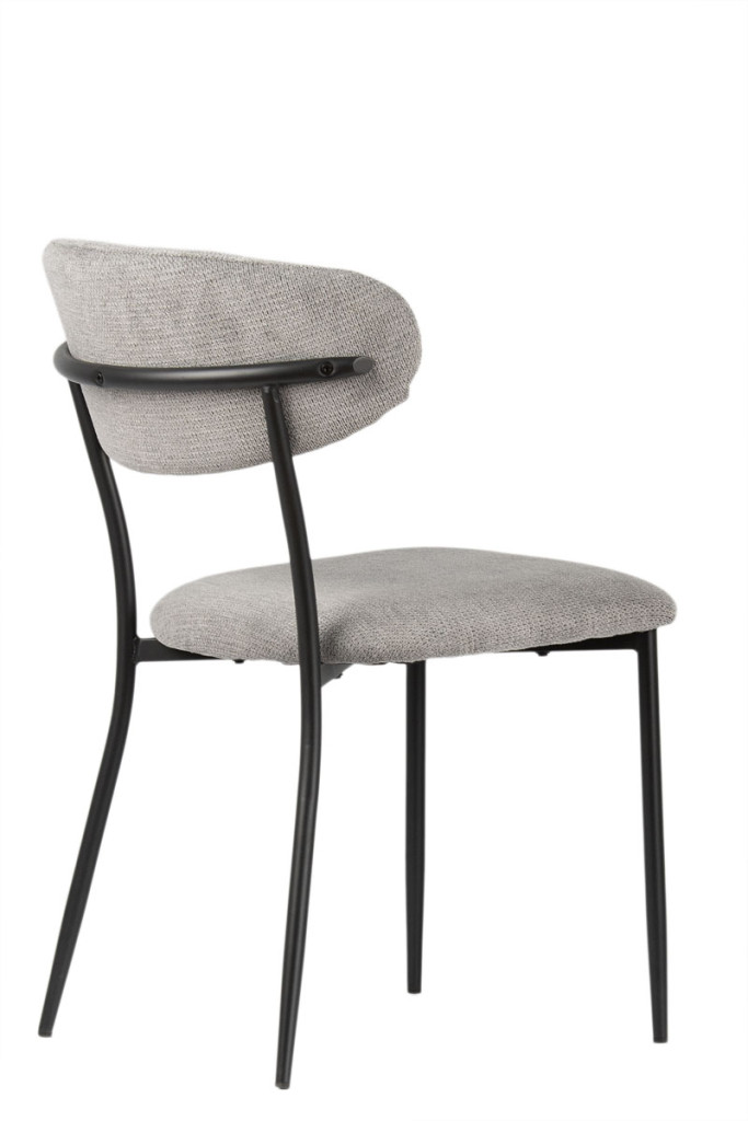 A porszórt fekete fémváz modern megjelenést kölcsönöz a széknek, miközben kiváló stabilitást biztosít. A karcsú, enyhén szétálló lábak könnyedséget adnak a szerkezetnek, és harmonikusan kiegészítik a puha, ívelt formájú kárpitozott testet – így hozva létre egységes, stílusos megjelenést.