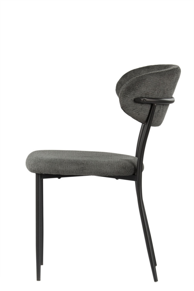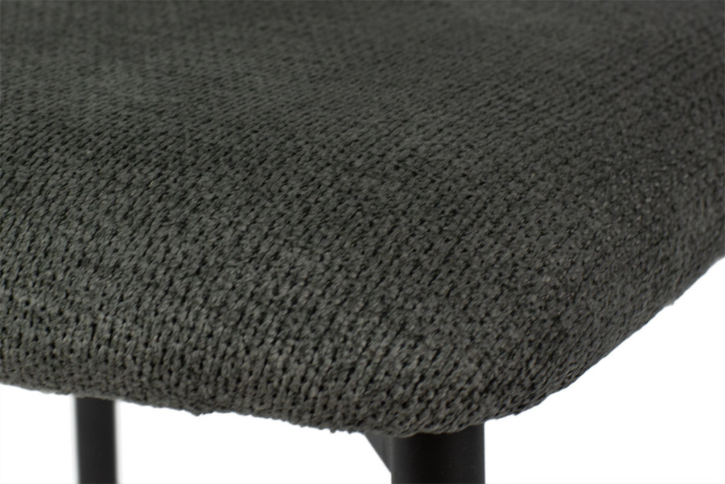 A fekete, porszórt fémalap könnyedséget és modern megjelenést ad a szerkezetnek, miközben stabilitást és biztonságot nyújt. A karcsú lábak tökéletesen illeszkednek az ülőfelület ívelt vonalaihoz, így hozva létre egységes és harmonikus megjelenést.