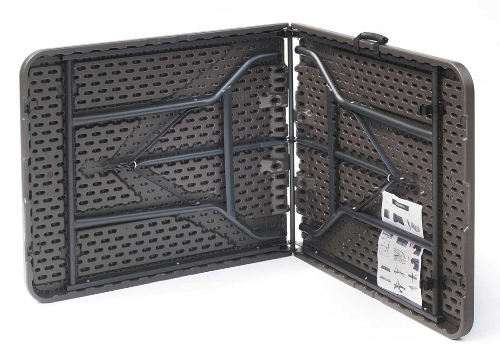 kerti (catering) asztal a legkényelmesebb asztal, amely gyakorlatilag bárhol könnyen tárolható, szállítható és felállítható. Sikeresen működik kültéren és beltéren egyaránt. Remek asztal a kertbe, teraszra vagy telkre, de tökéletes kiegészítő asztal beltérre is. Tökéletes például kiegészítő étkezőasztalnak, mely könnyen összecsukható és elrejthető, ha nincs rá szükség.Ezért vendéglátó asztalnak is tökéletes - szabadtéri rendezvényeken, bankett- vagy konferenciatermekben.Az asztal vonzó, természetes grafitbarna színű, és egy nagyon kényelmes szállítási „bőrönddé” összecsukható. A speciális mechanizmusnak köszönhetően az asztal összecsukása és széthajtása nagyon egyszerű - ezt valóban egy kézzel is megteheti. Az összecsukott asztal nagyon kevés helyet foglal el, egy ilyen bőrönd belsejében az asztal lábai és a szétnyitható mechanizmusa védett.A könnyű acélból készült porszórt keretnek köszönhetően az asztal nagyon stabil és nagyon könnyen összeszerelhető.A széthajtott asztallap mérete 180 x 76 cm, így tipikus, közepes méretű asztalnak megfelelő. Az asztallap nagyon jó minőségű műanyagból készült, és ellenáll az időjárás viszontagságainak. A speciális felépítésnek köszönhetően a teteje behajtható az ún egy bőrönd. Az asztal méretei és minőségi anyagai ellenére viszonylag könnyű és kézre álló - bárhová könnyedén áthelyezhetjük.