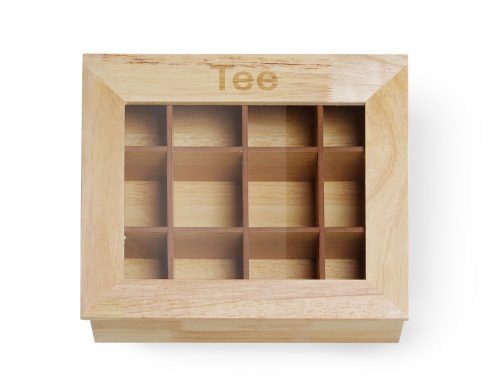 A tárolt tea ízének és aromájának megőrzéseAkár 144 teazsák tárolása: 12 rekesz, egyenként 12 teazsákhozElegáns kiegészítő minden kávés svédasztalhozFából készült – természetes és tartós
