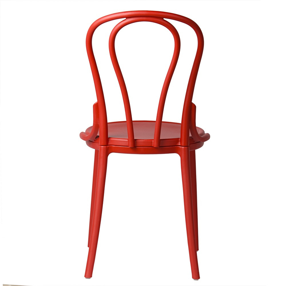 A jellegzetes, domborított háttámla díszes vonalai könnyedséget és eleganciát kölcsönöznek a széknek. Ez az a részlet, amely megkülönbözteti a modellt a szokásos műanyag székektől. A lekerekített forma miatt a szék az intenzív színe ellenére is harmonikus és egységes formát őriz. Ha egy vintage stílusú, piros székre vágyik, amely ötvözi a klasszikus stílust a modern kivitelekkel, akkor a Vintage modell a megfelelő választás.